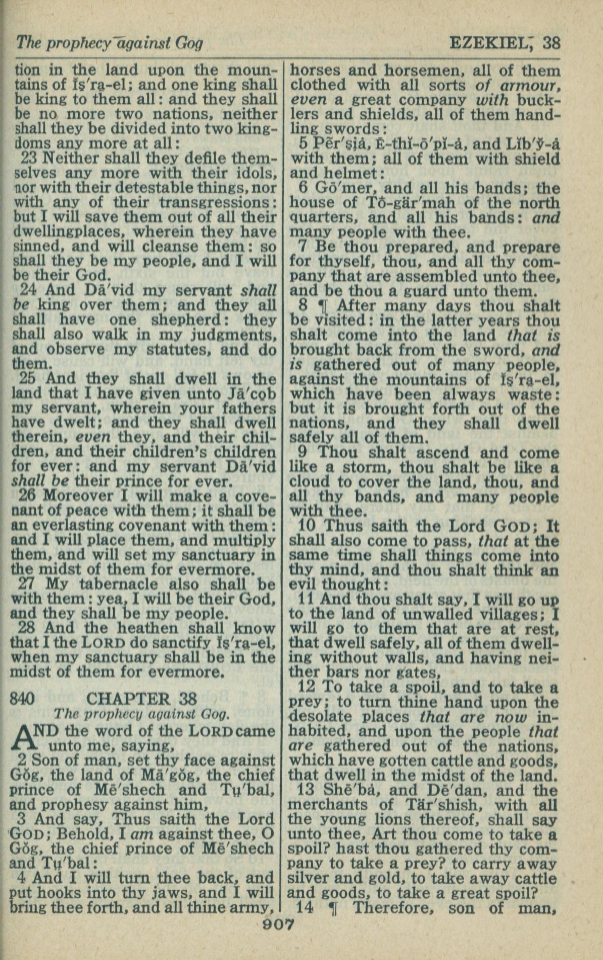 1946年King James Version 以西結書 37 章 22 節到 38 章 14 節