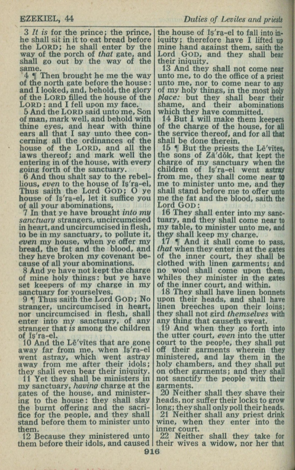 1946年King James Version 以西結書 44 章 3 節到 44 章 22 節