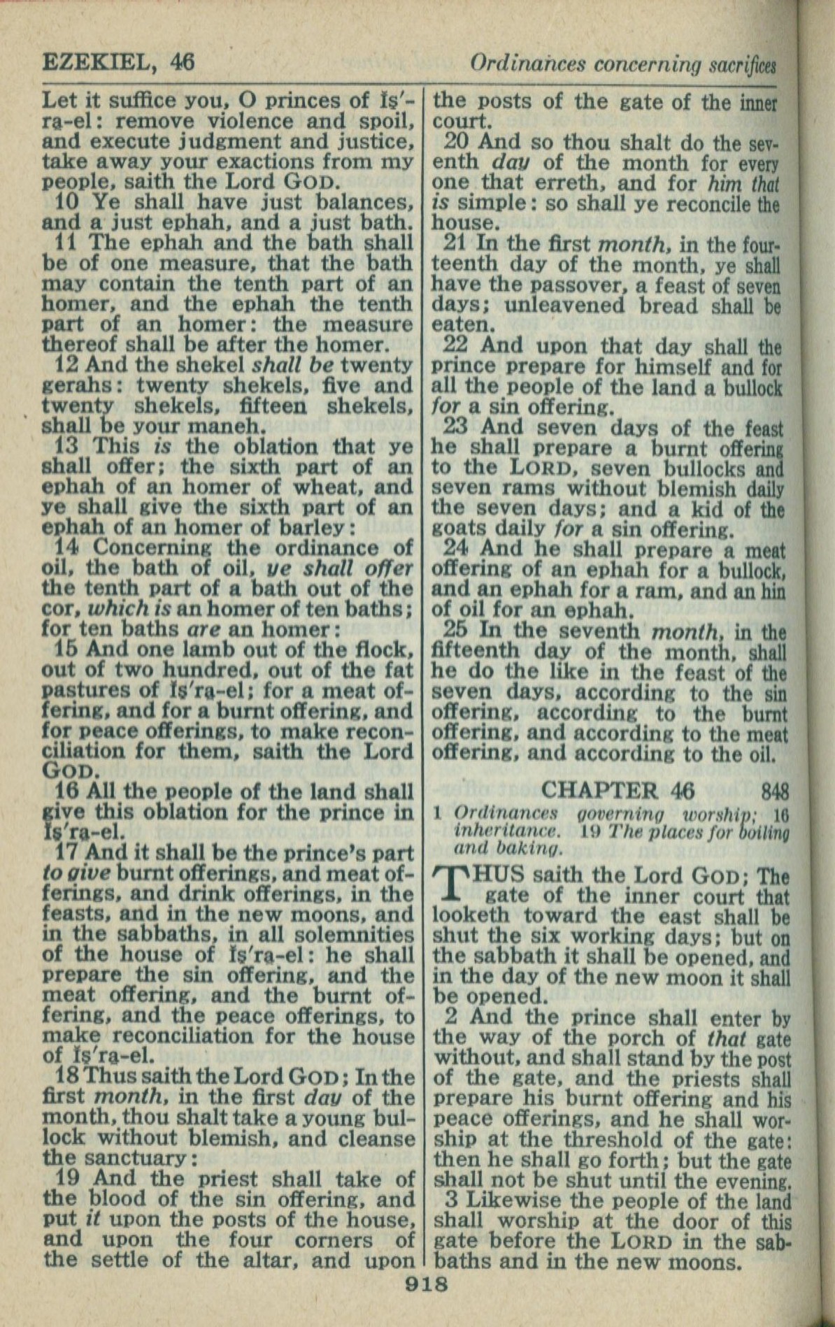 1946年King James Version 以西結書 45 章 10 節到 46 章 3 節