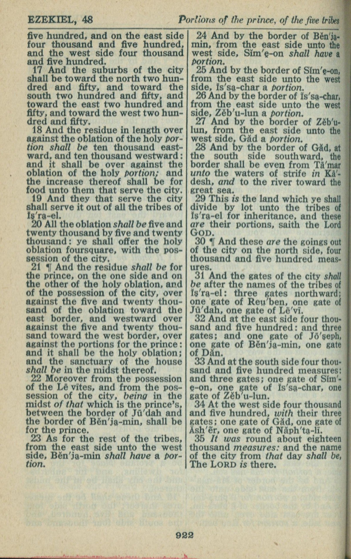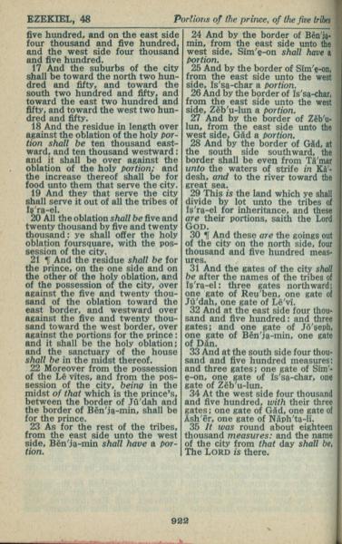 1946年King James Version 以西結書 48 章 17 節到 48 章 35 節