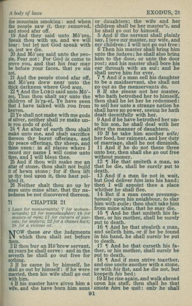1946年King James Version 出埃及記 20 章 19 節到 21 章 19 節