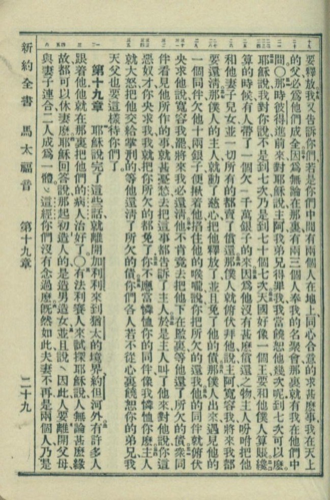 1949年新約全書 馬太福音 18 章 19 節到 19 章 6 節