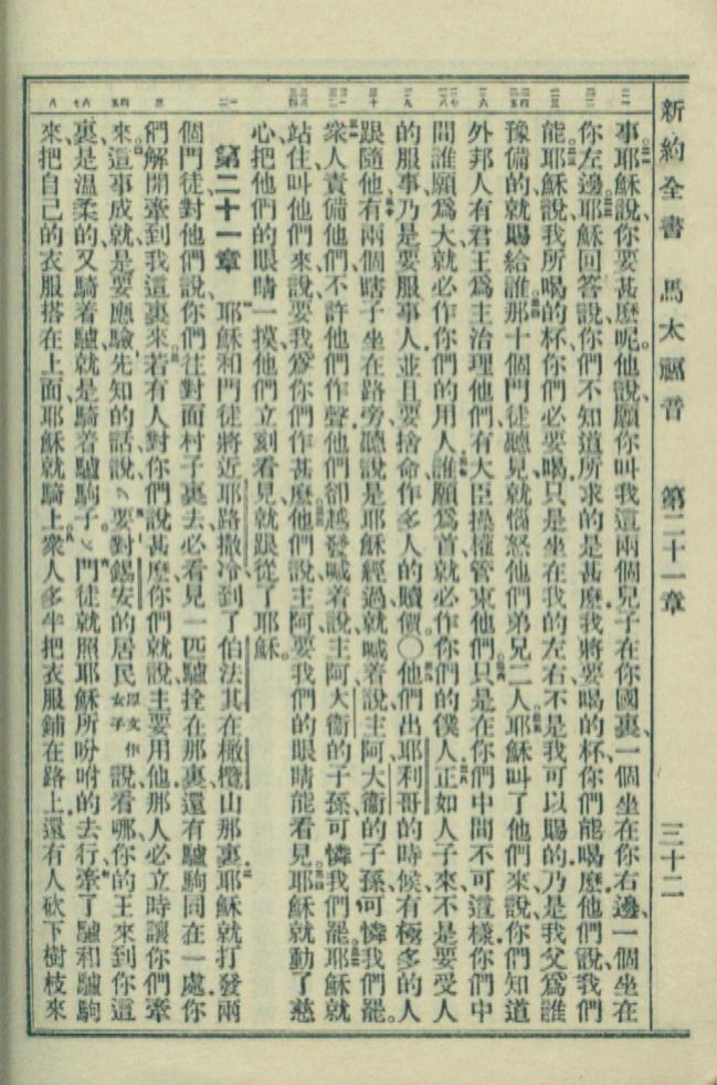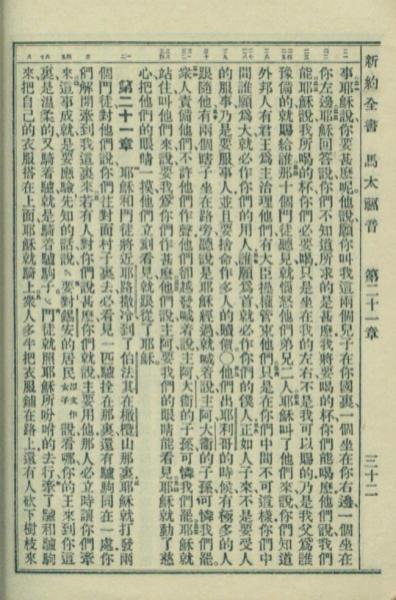 1949年新約全書 馬太福音 20 章 21 節到 21 章 8 節