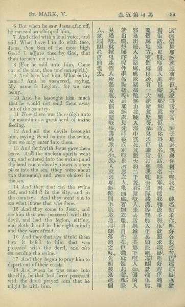 1909年中西字新約全書 馬可福音 5 章 6 節到 5 章 18 節