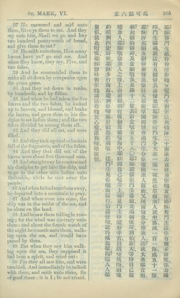 1909年中西字新約全書 馬可福音 6 章 37 節到 6 章 50 節