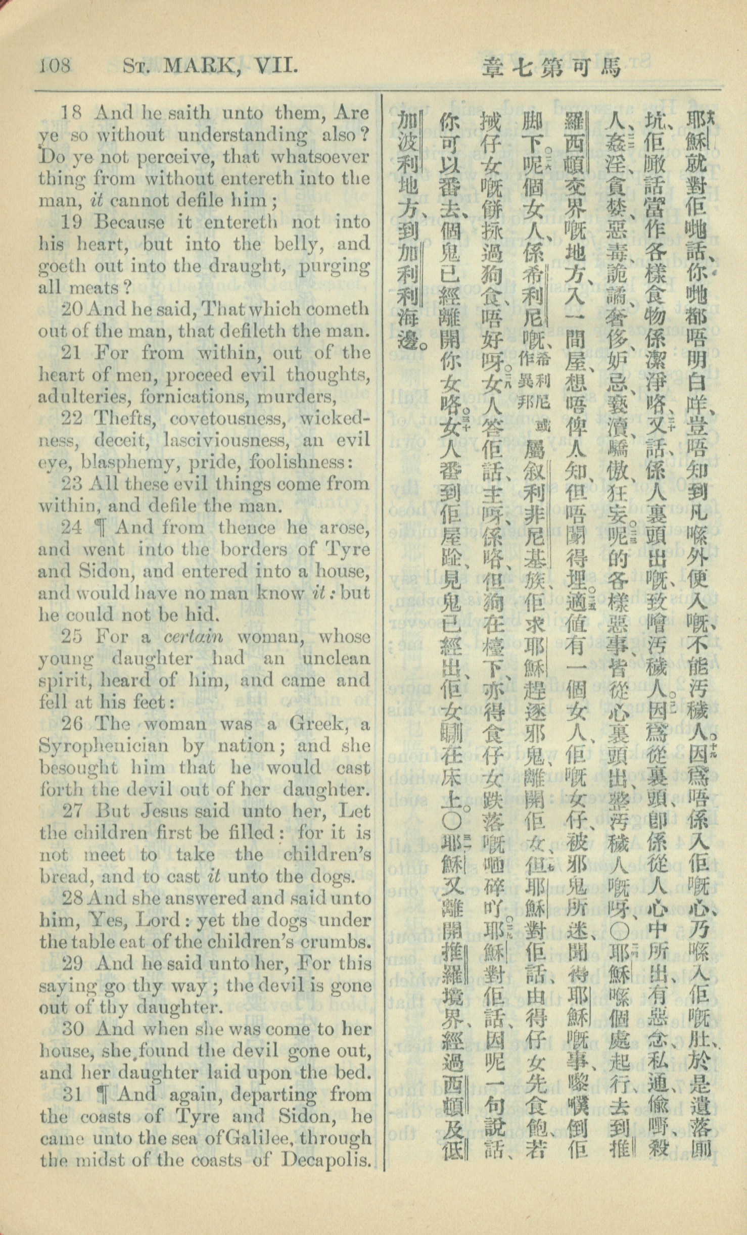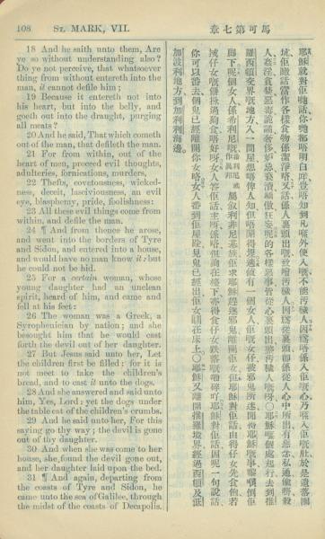 1909年中西字新約全書 馬可福音 7 章 18 節到 7 章 31 節