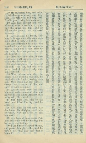 1909年中西字新約全書 馬可福音 9 章 19 節到 9 章 30 節