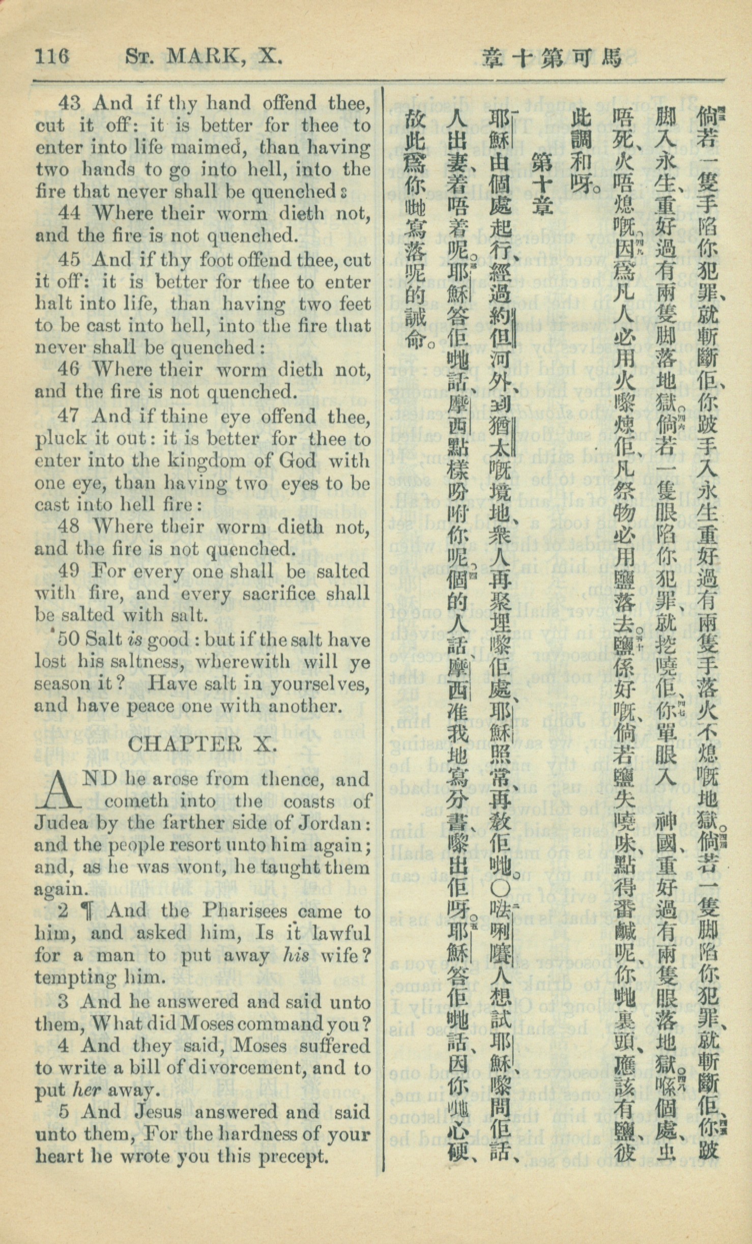 1909年中西字新約全書 馬可福音 9 章 43 節到 10 章 5 節