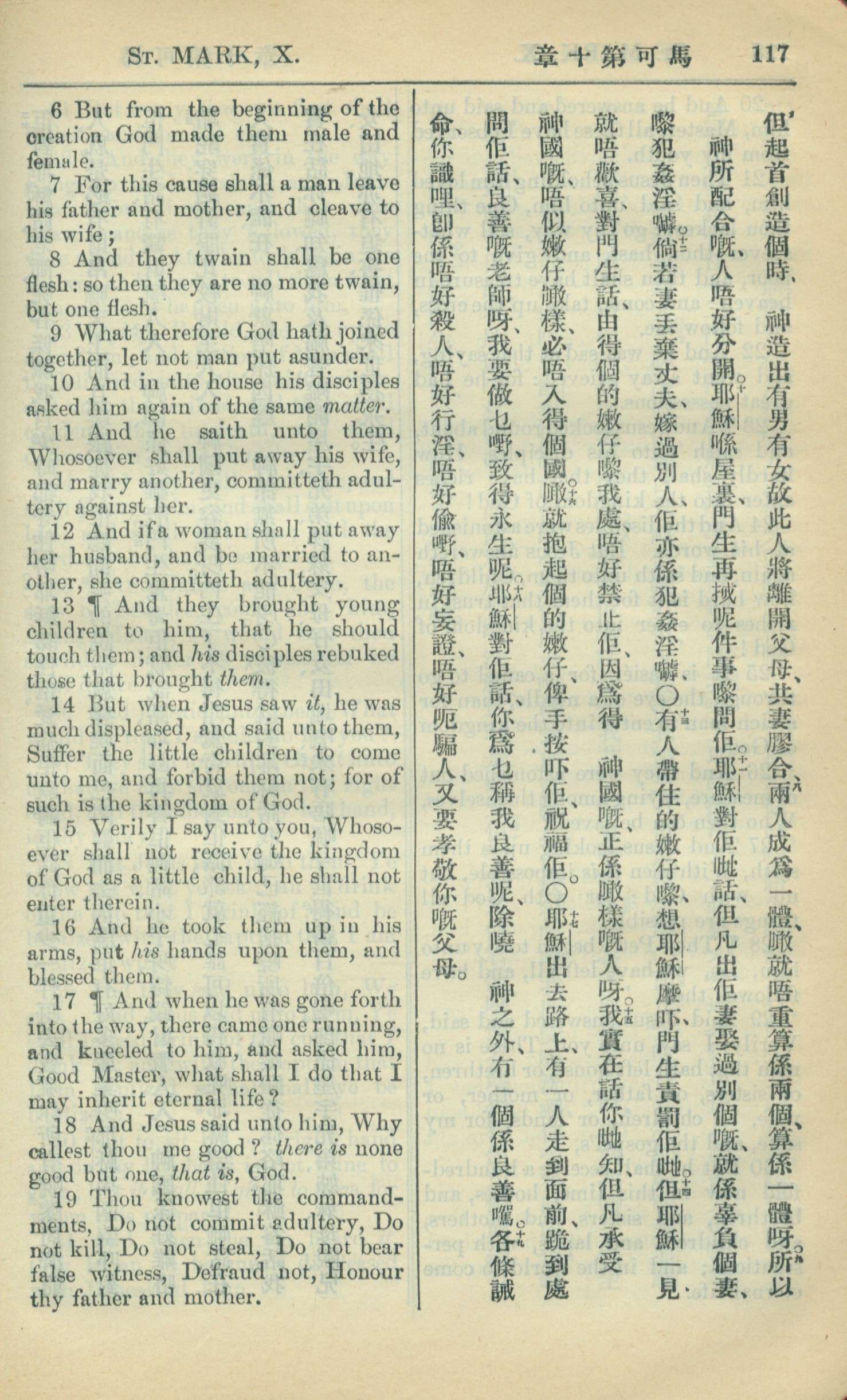 1909年中西字新約全書 馬可福音 10 章 6 節到 10 章 19 節