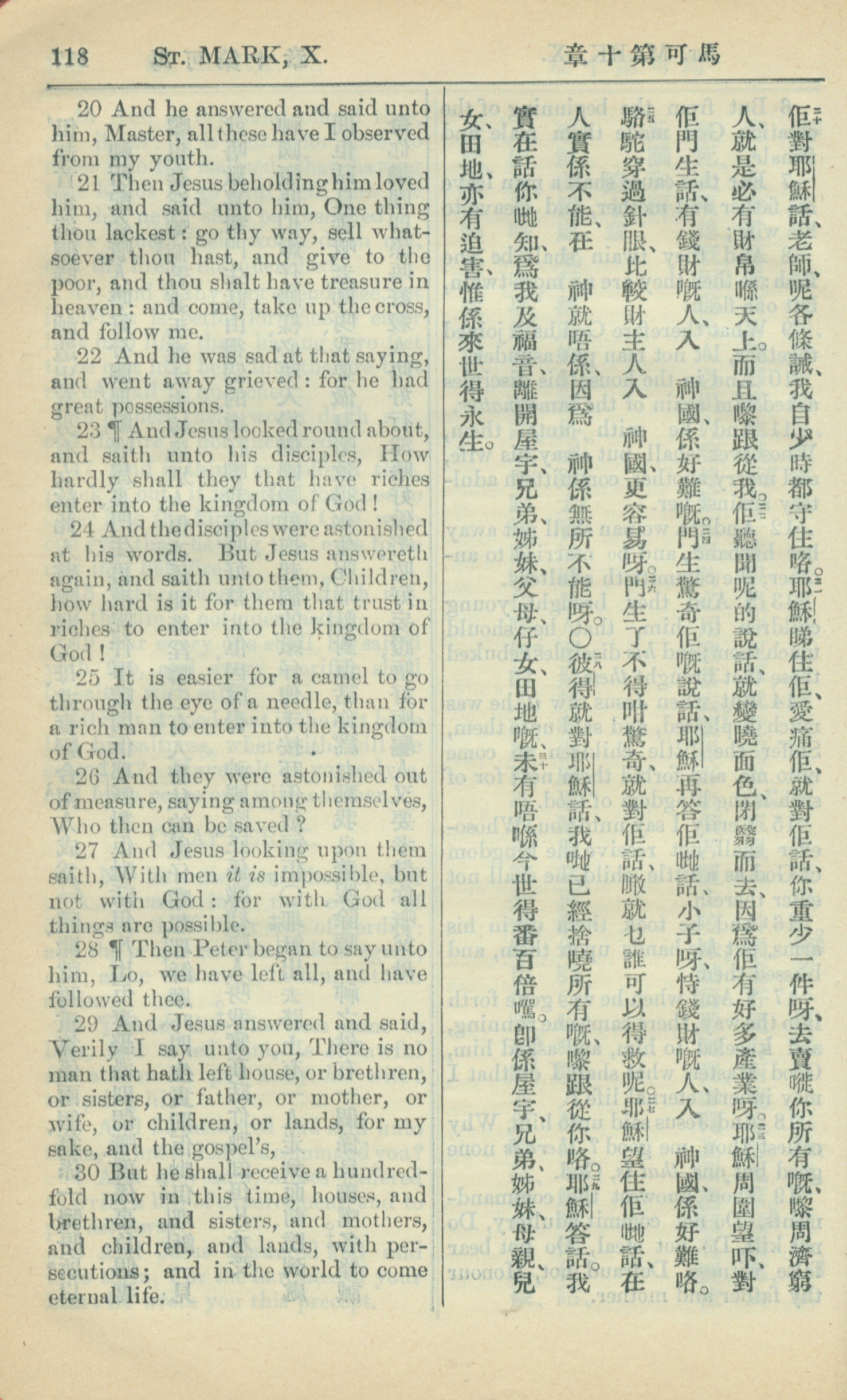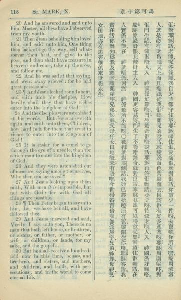 1909年中西字新約全書 馬可福音 10 章 20 節到 10 章 30 節