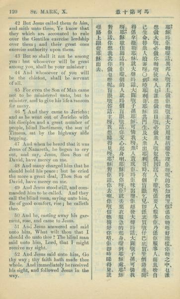1909年中西字新約全書 馬可福音 10 章 42 節到 10 章 52 節