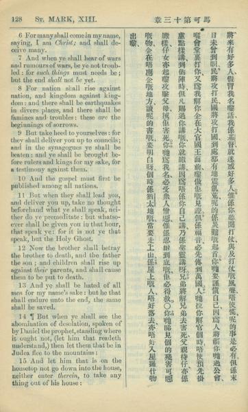 1909年中西字新約全書 馬可福音 13 章 6 節到 13 章 15 節