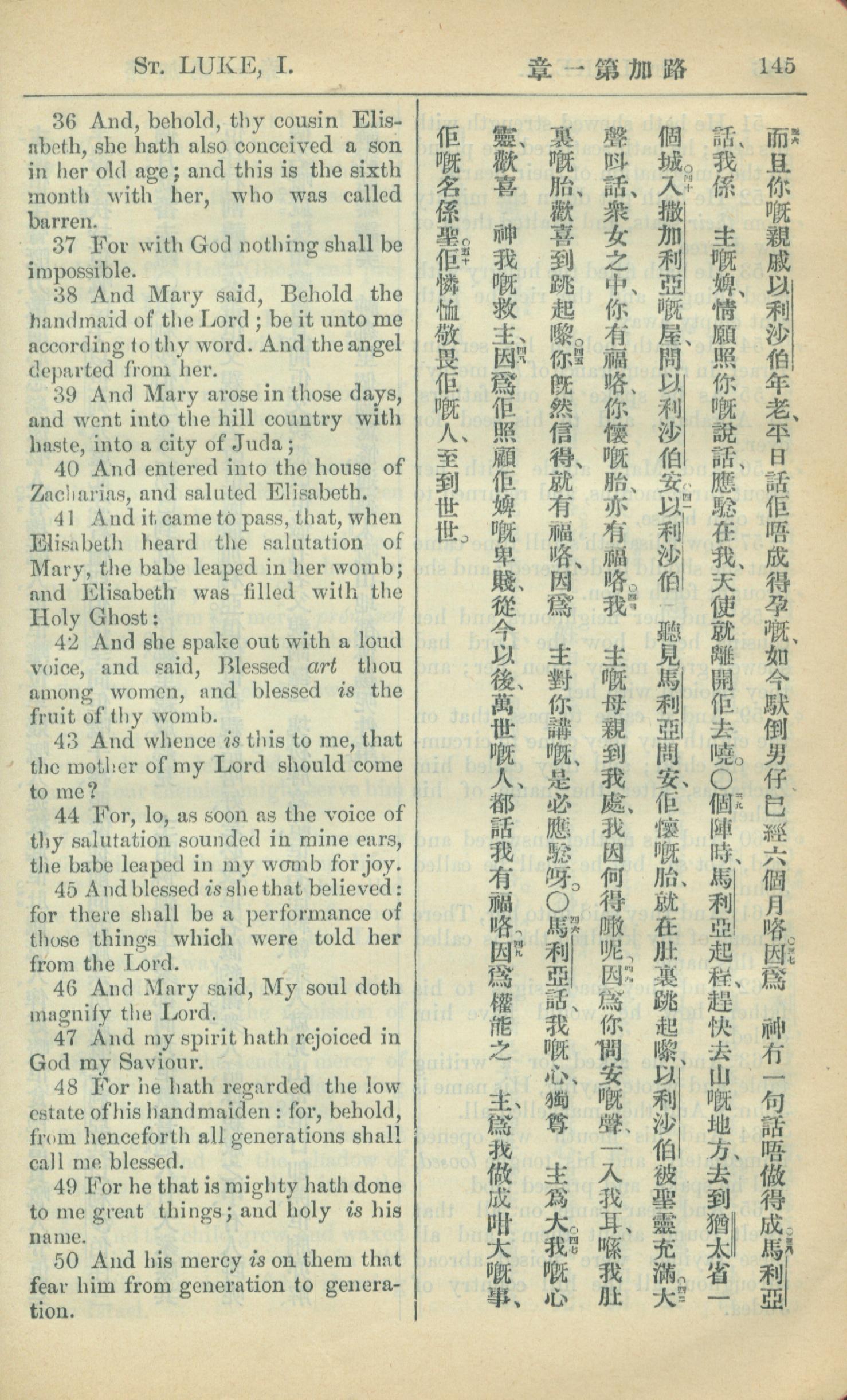 1909年中西字新約全書 路加福音 1 章 36 節到 1 章 50 節