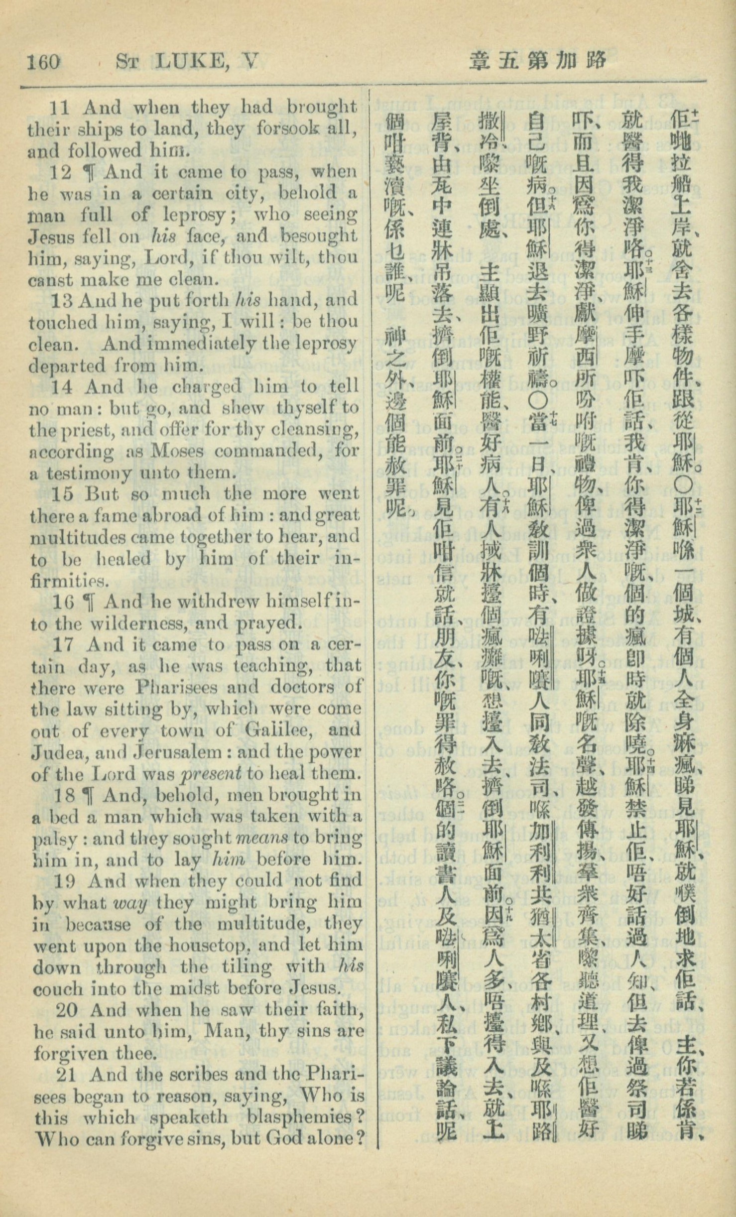 1909年中西字新約全書 路加福音 5 章 11 節到 5 章 21 節