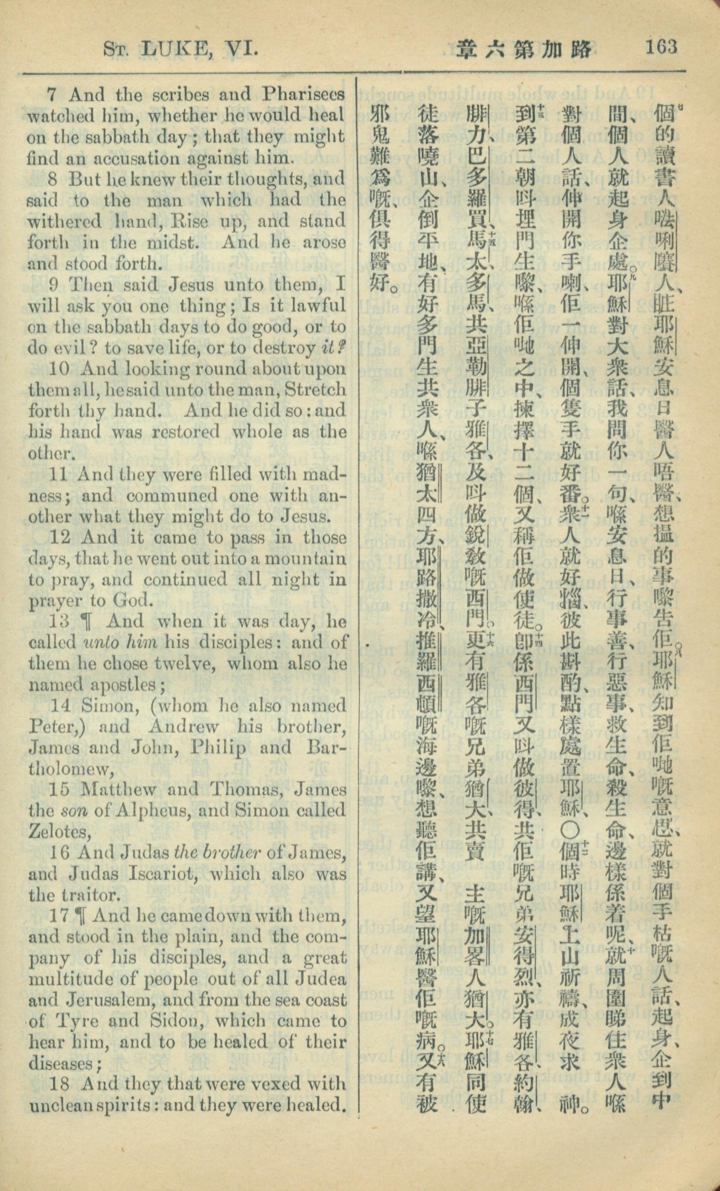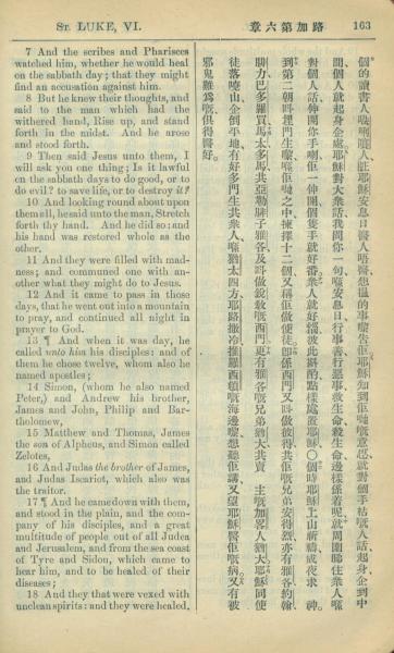 1909年中西字新約全書 路加福音 6 章 7 節到 6 章 18 節