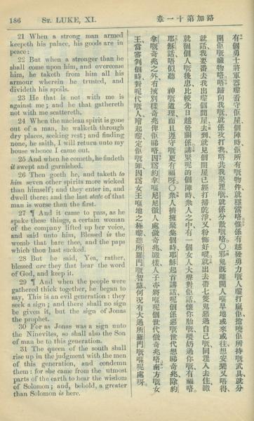 1909年中西字新約全書 路加福音 11 章 21 節到 11 章 31 節