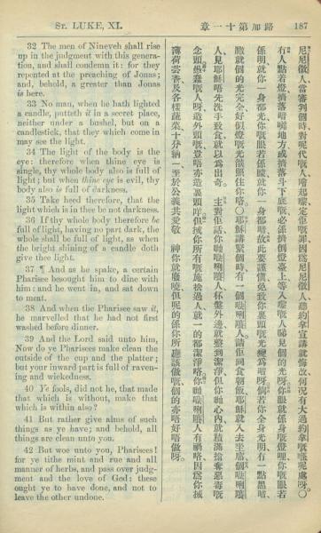 1909年中西字新約全書 路加福音 11 章 32 節到 11 章 42 節