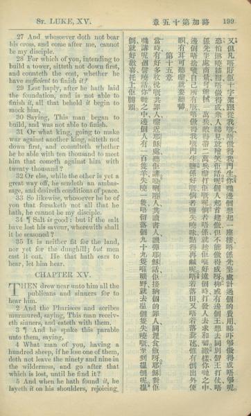 1909年中西字新約全書 路加福音 14 章 27 節到 15 章 5 節
