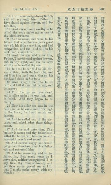 1909年中西字新約全書 路加福音 15 章 18 節到 15 章 29 節