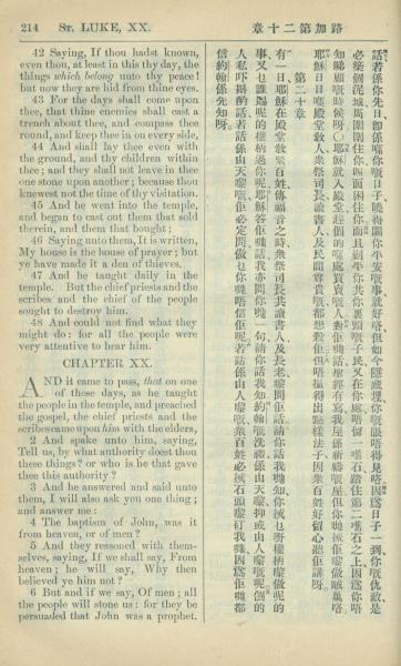 1909年中西字新約全書 路加福音 19 章 42 節到 20 章 6 節