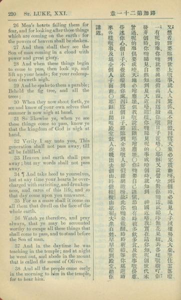 1909年中西字新約全書 路加福音 21 章 26 節到 21 章 38 節