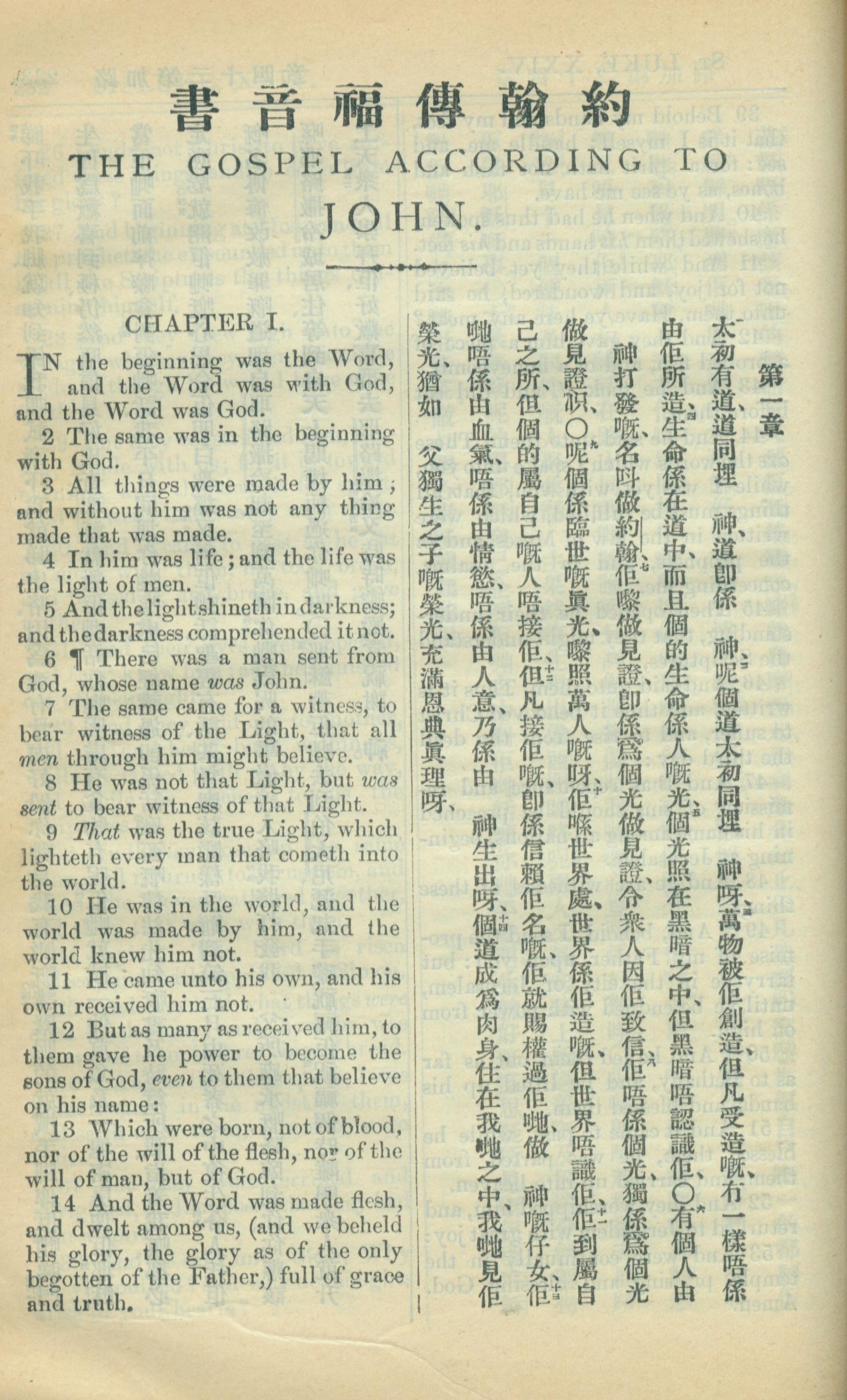 1909年中西字新約全書 約翰福音 1 章 1 節到 1 章 14 節