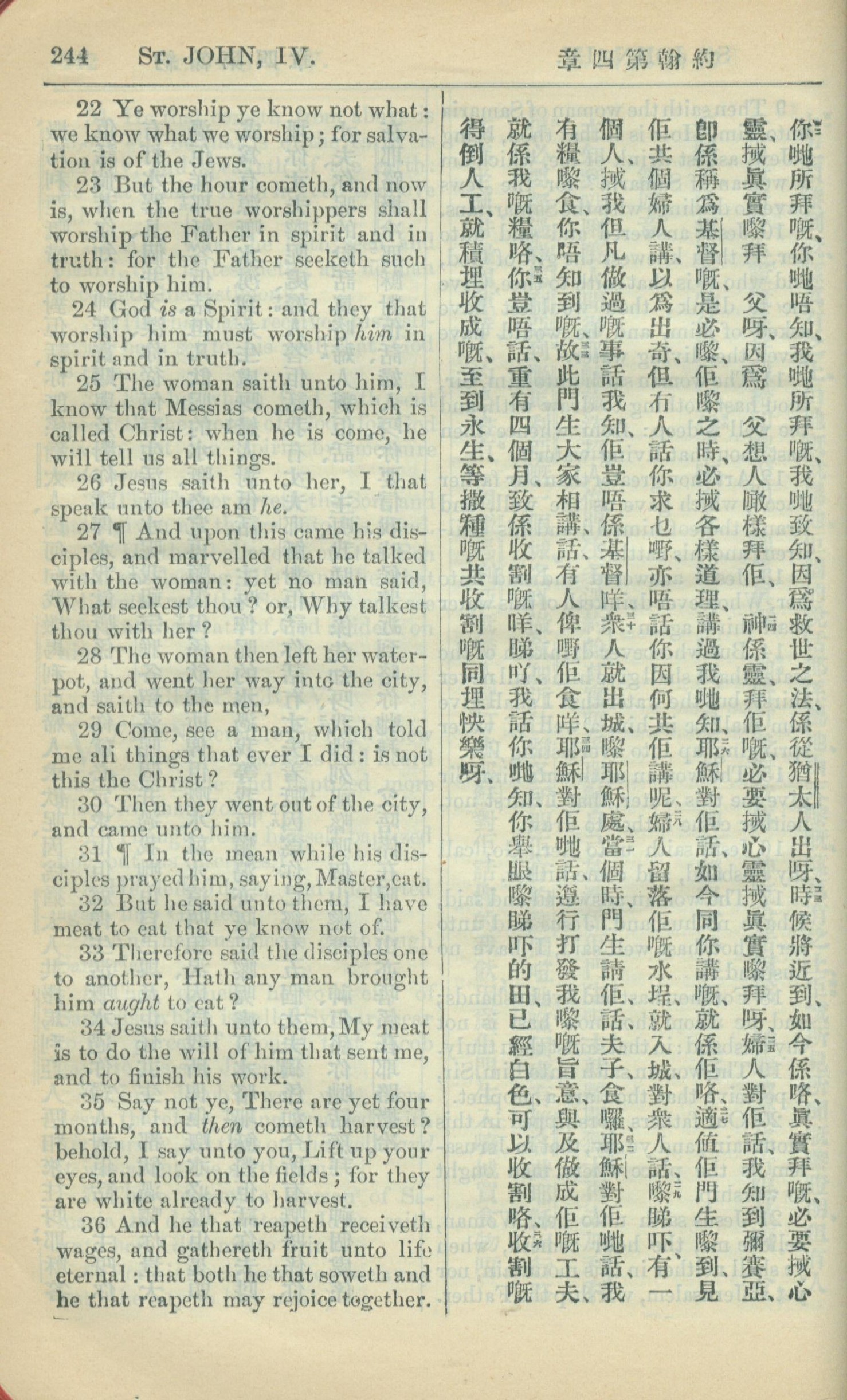 1909年中西字新約全書 約翰福音 4 章 22 節到 4 章 36 節