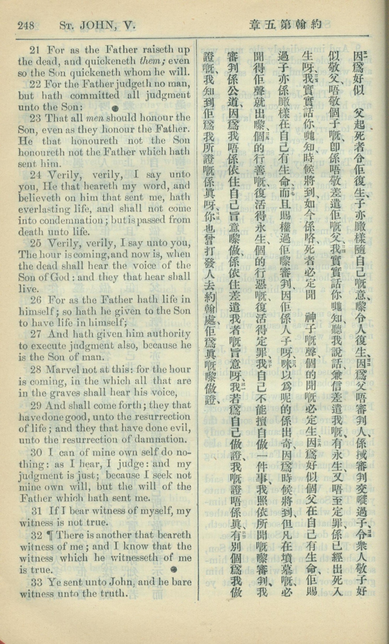1909年中西字新約全書 約翰福音 5 章 21 節到 5 章 33 節