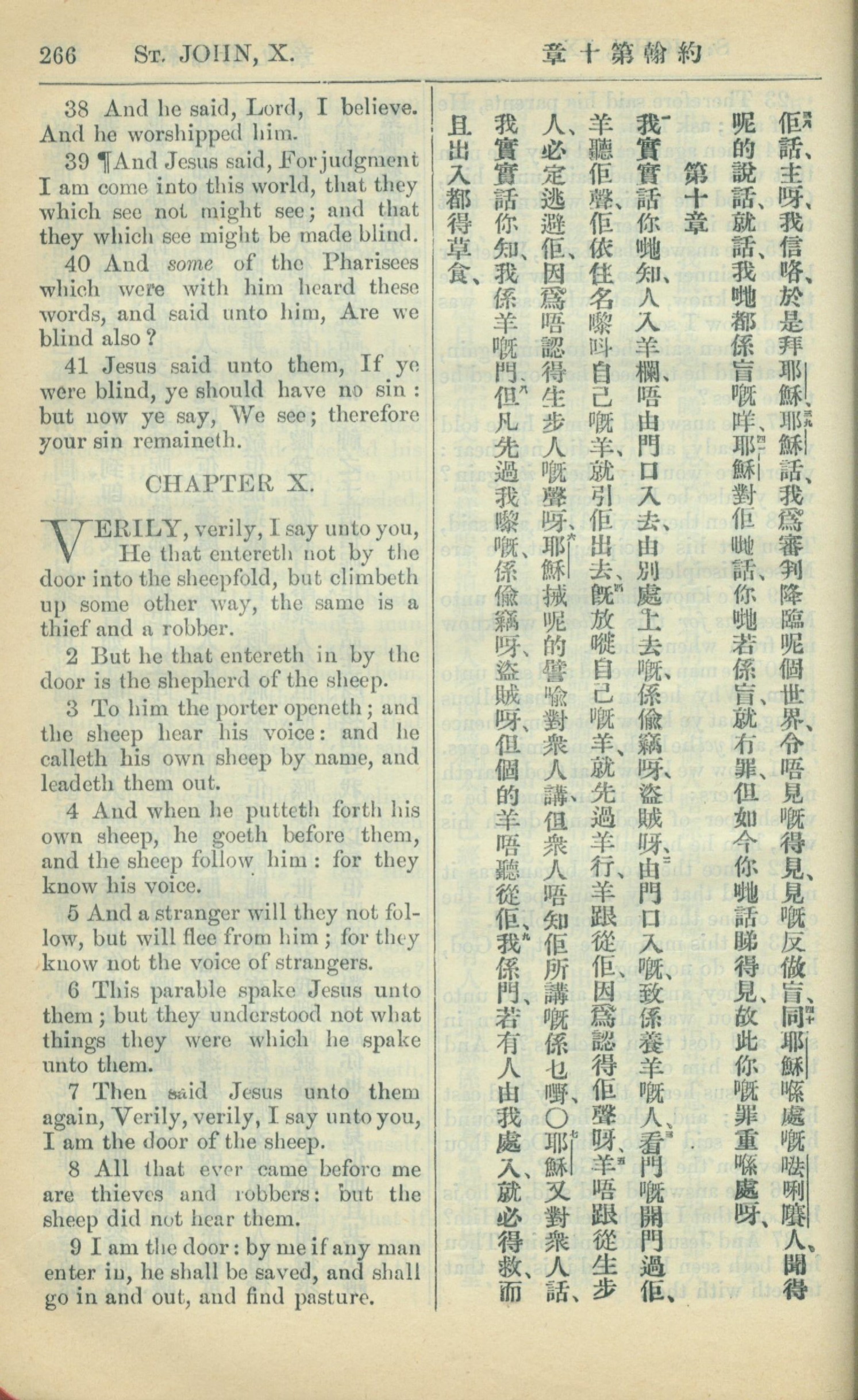1909年中西字新約全書 約翰福音 9 章 38 節到 10 章 9 節