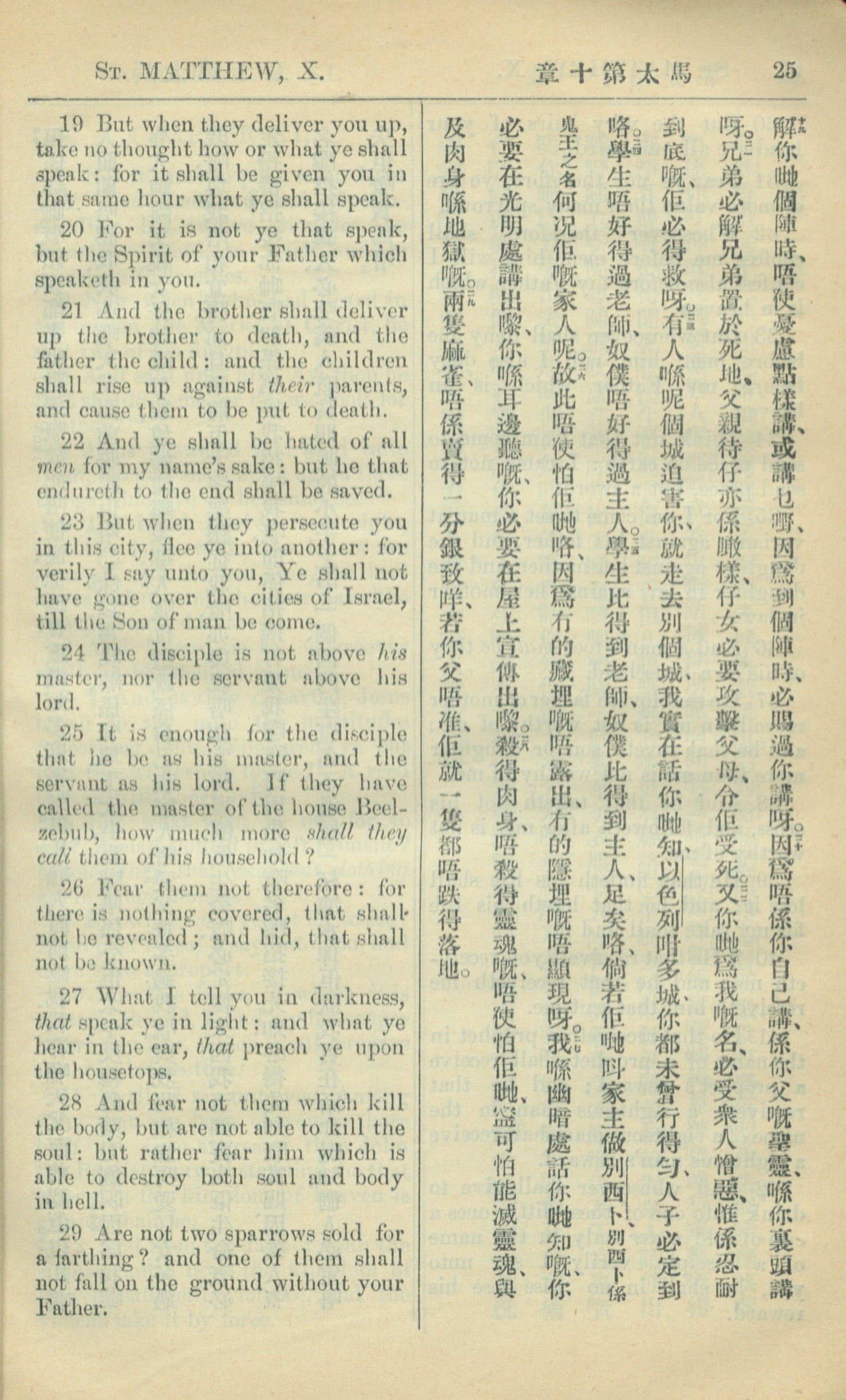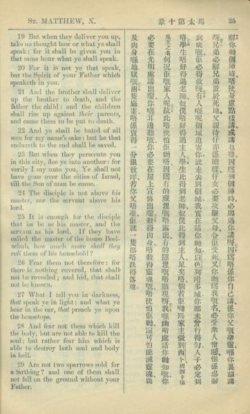 1909年中西字新約全書 馬太福音 10 章 19 節到 10 章 29 節