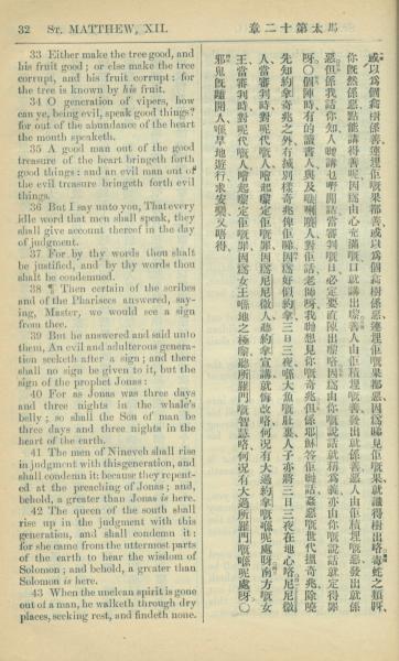 1909年中西字新約全書 馬太福音 12 章 33 節到 12 章 43 節