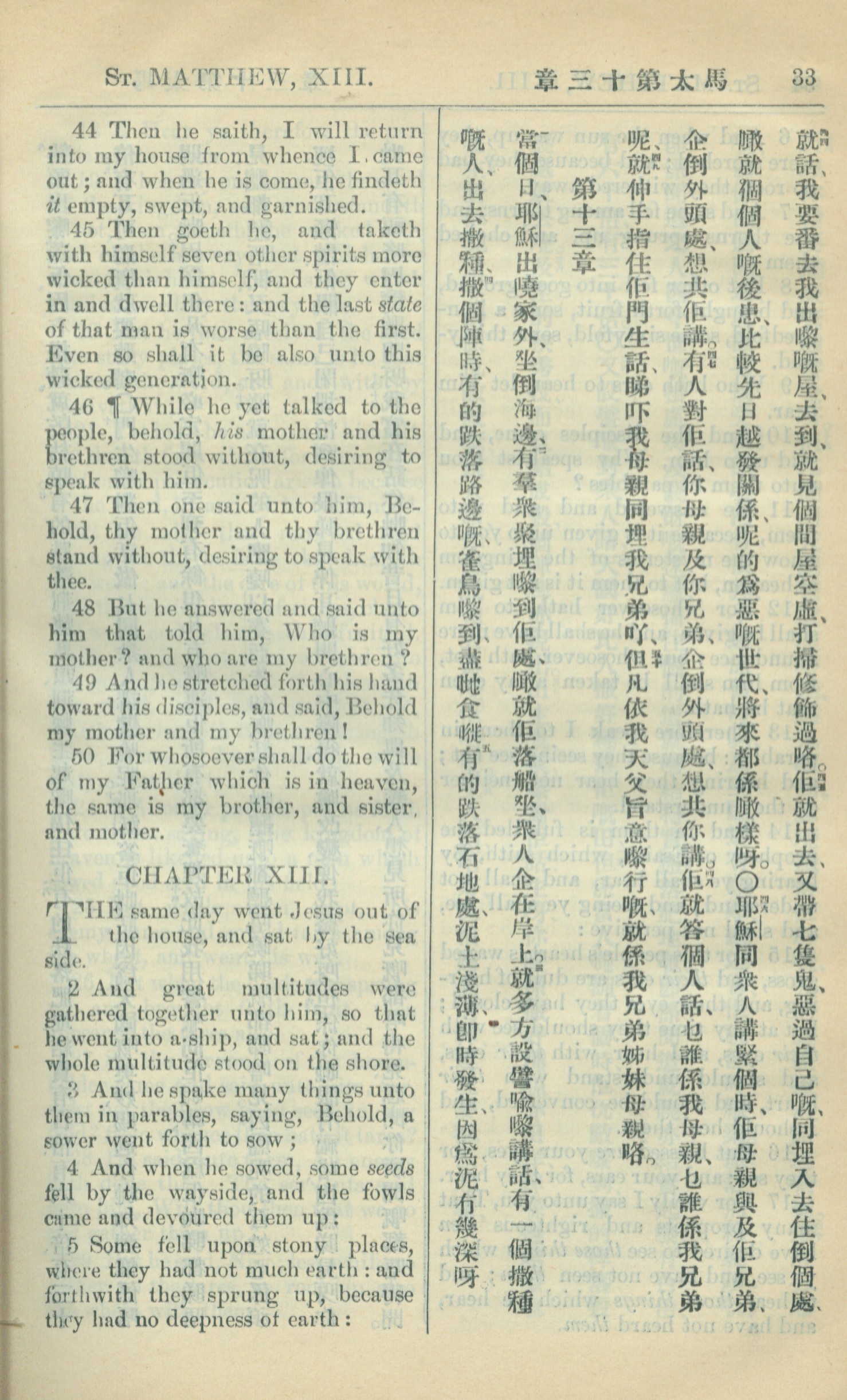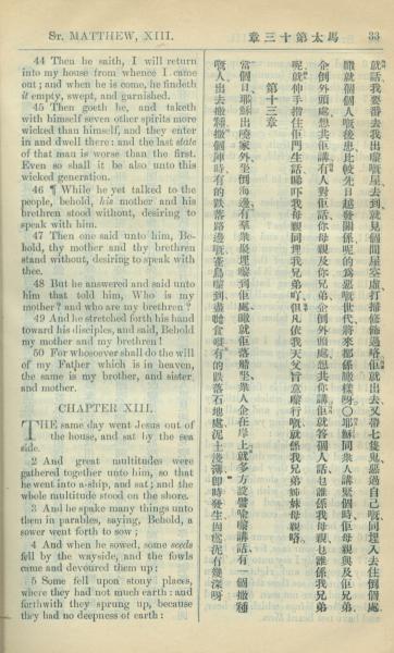 1909年中西字新約全書 馬太福音 12 章 44 節到 13 章 5 節