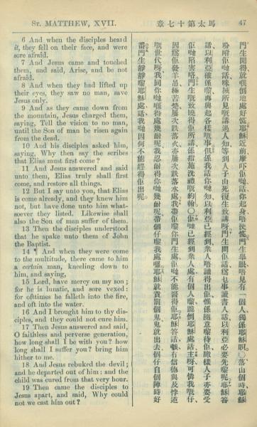 1909年中西字新約全書 馬太福音 17 章 6 節到 17 章 19 節