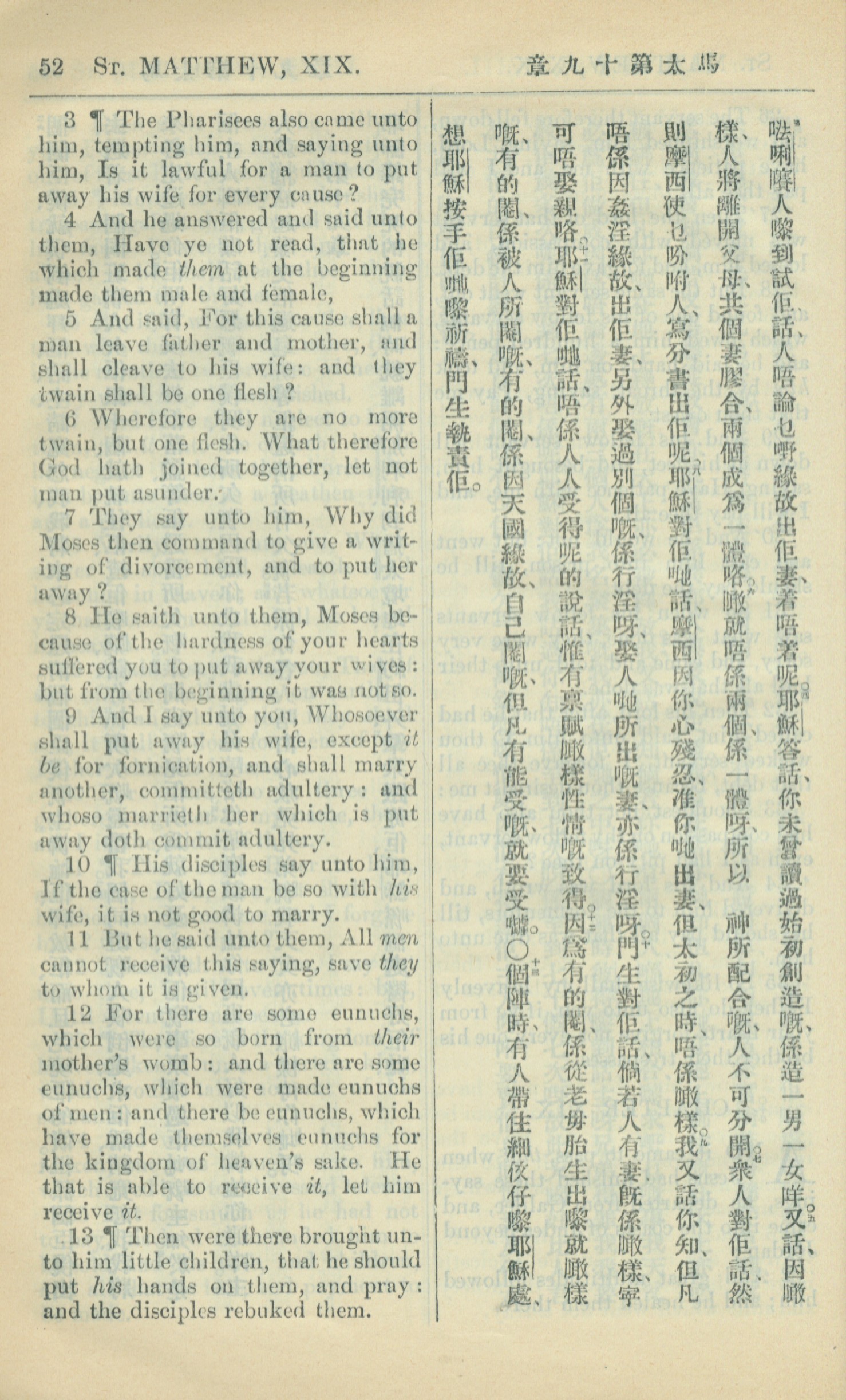 1909年中西字新約全書 馬太福音 19 章 3 節到 19 章 13 節
