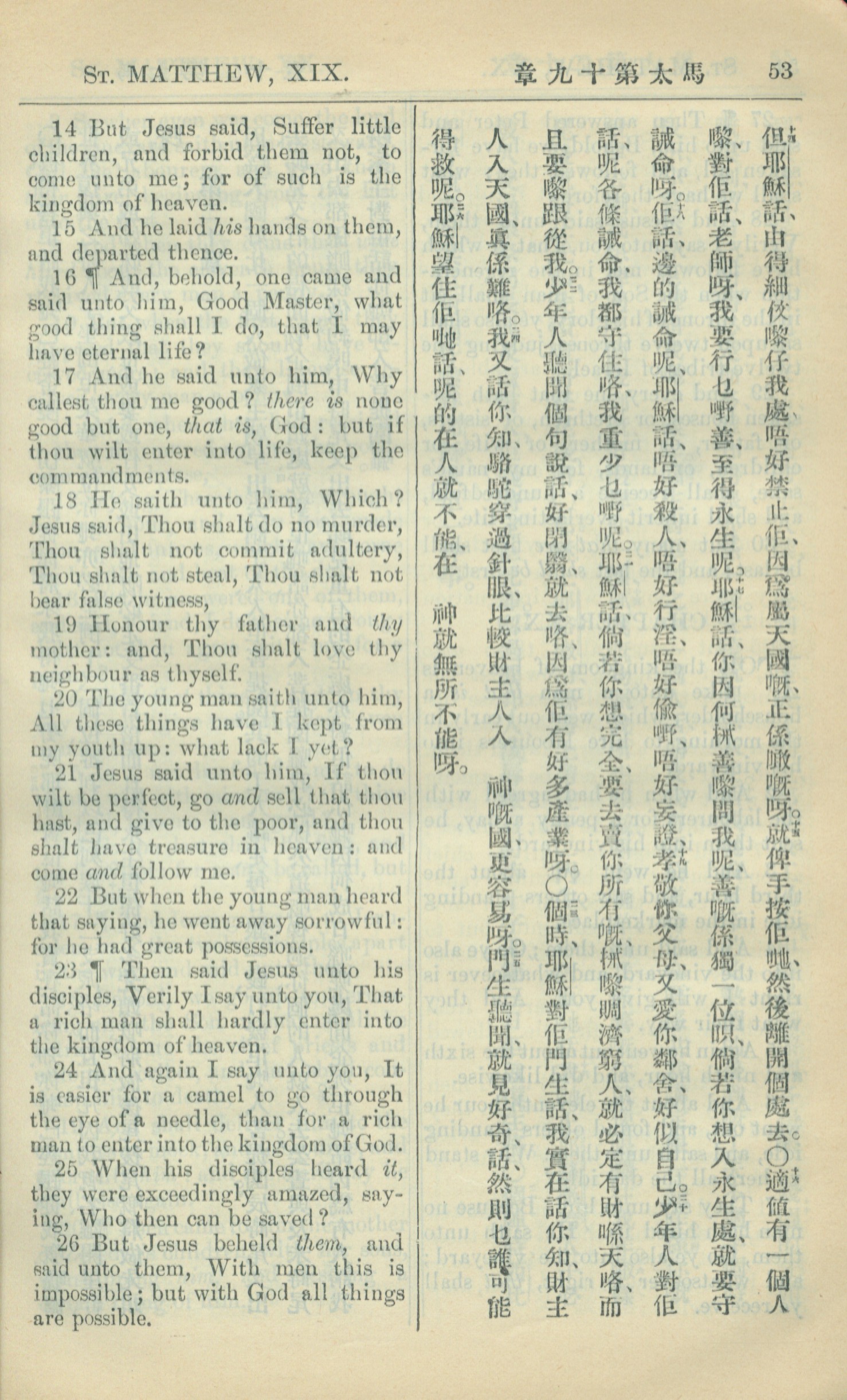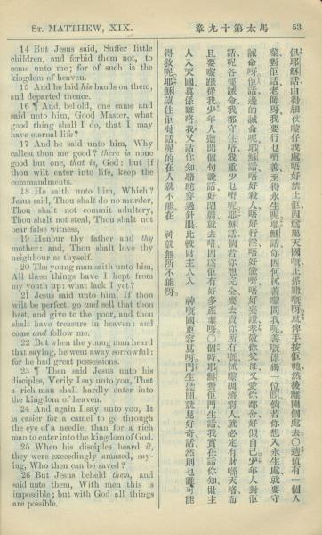 1909年中西字新約全書 馬太福音 19 章 14 節到 19 章 26 節