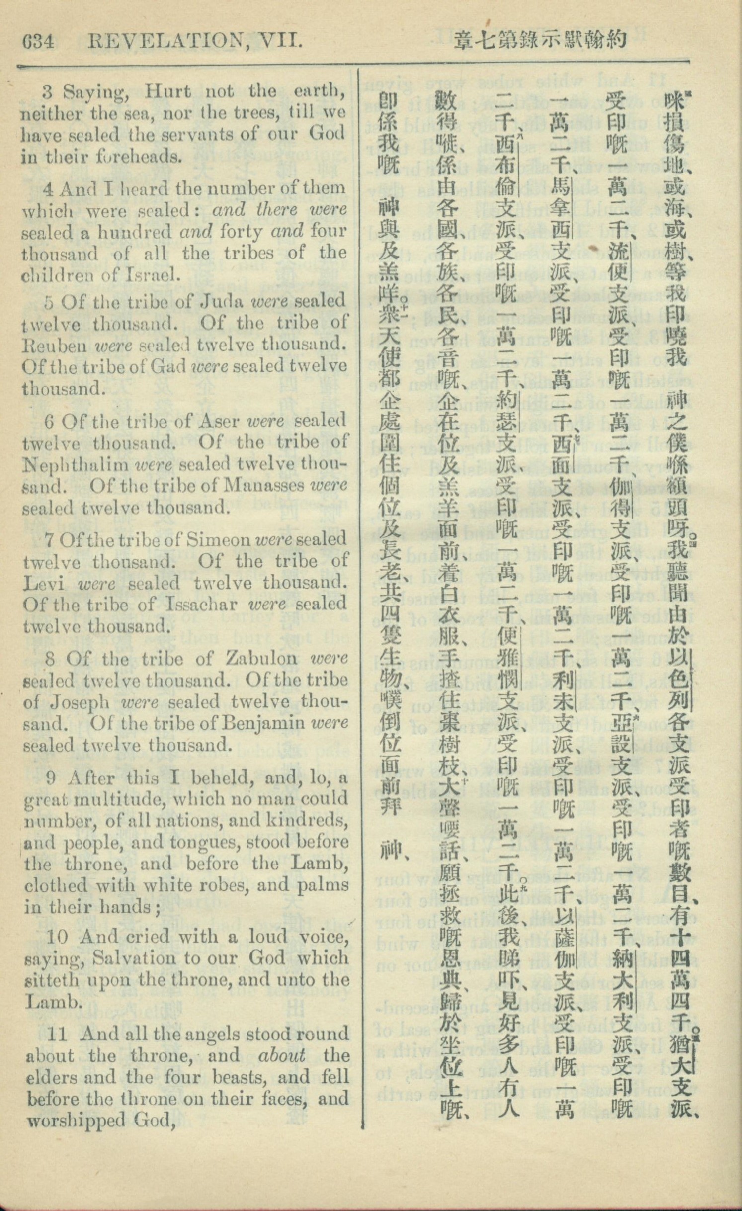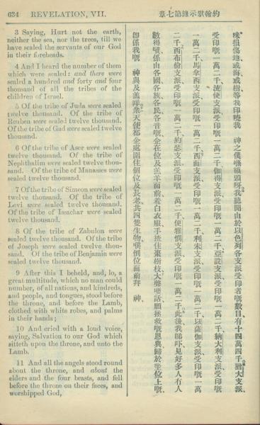 1909年中西字新約全書 啟示錄 7 章 3 節到 7 章 11 節