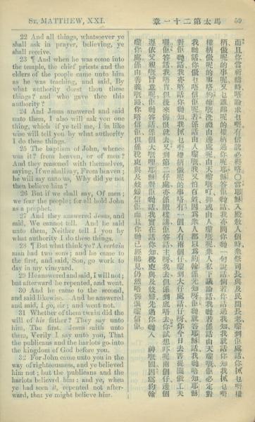 1909年中西字新約全書 馬太福音 21 章 22 節到 21 章 32 節