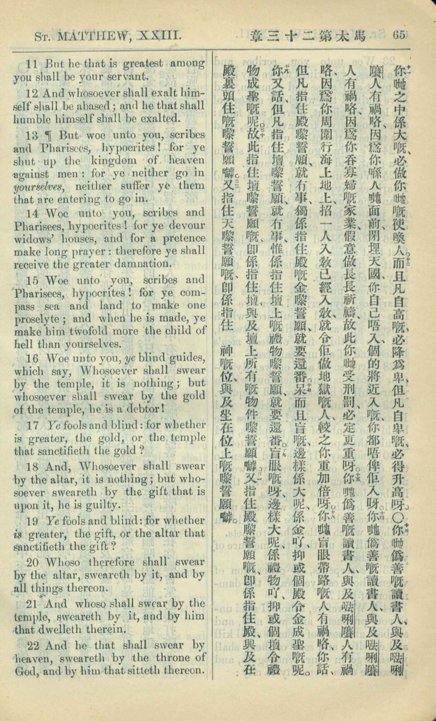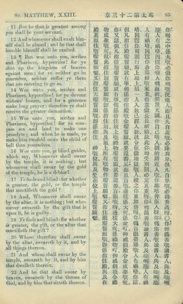 1909年中西字新約全書 馬太福音 23 章 11 節到 23 章 22 節