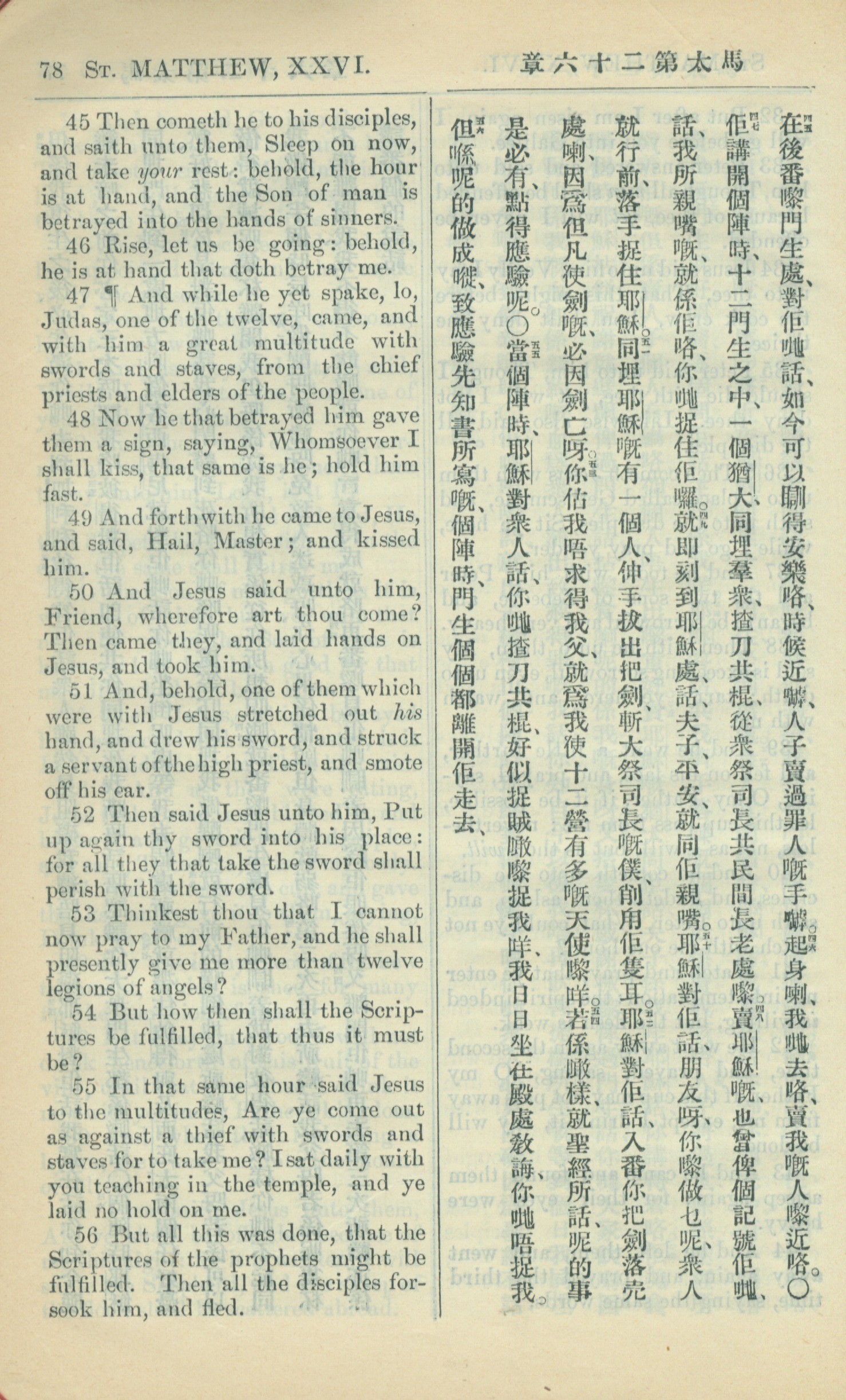 1909年中西字新約全書 馬太福音 26 章 45 節到 26 章 56 節