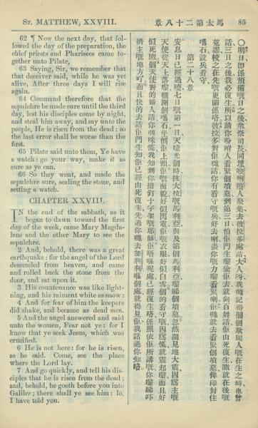 1909年中西字新約全書 馬太福音 27 章 62 節到 28 章 7 節