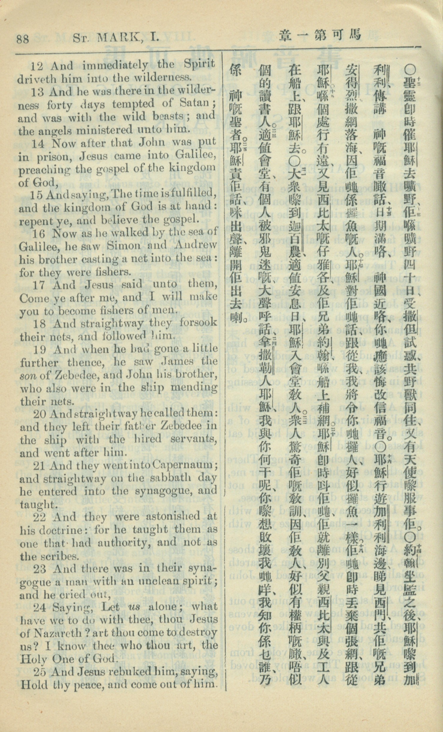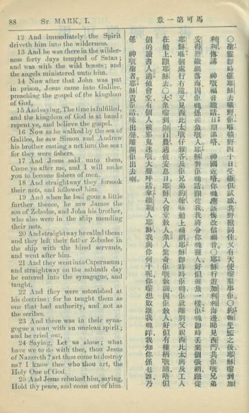 1909年中西字新約全書 馬可福音 1 章 12 節到 1 章 25 節