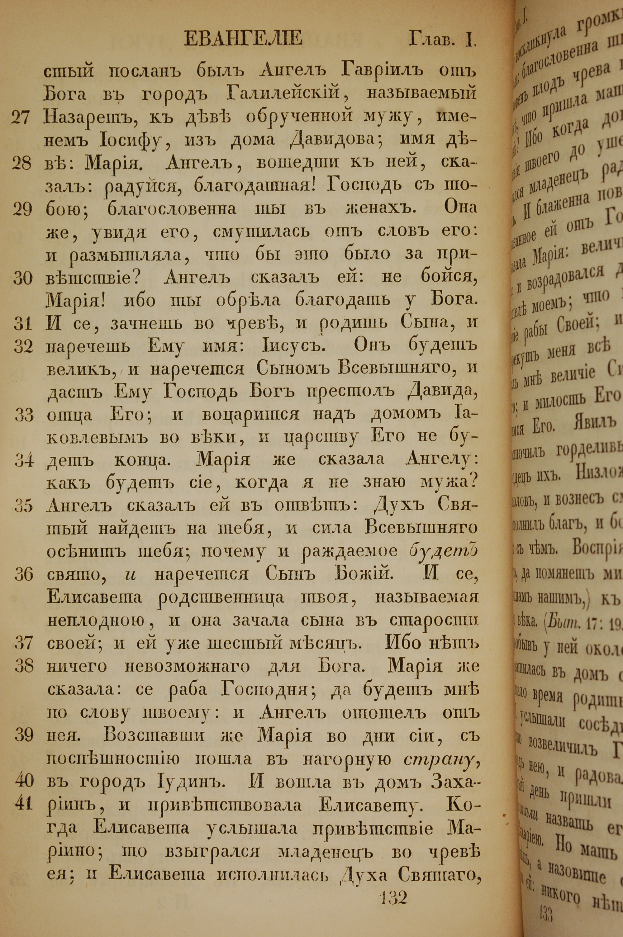 1855年俄文新約全書 路加福音 1 章 27 節到 1 章 41 節