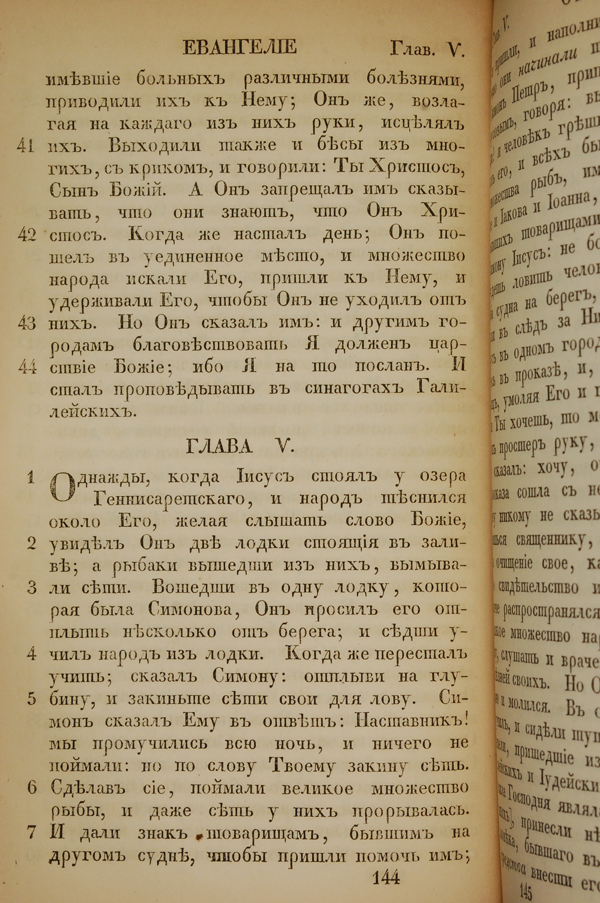 1855年俄文新約全書 路加福音 4 章 41 節到 5 章 7 節