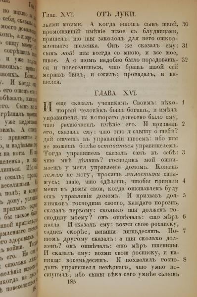 1855年俄文新約全書 路加福音 15 章 30 節到 16 章 8 節