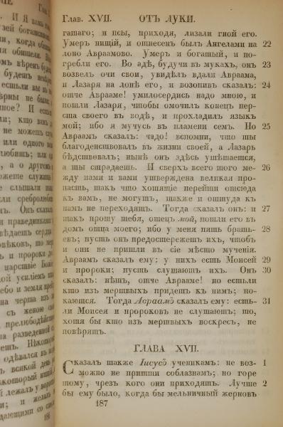 1855年俄文新約全書 路加福音 16 章 22 節到 17 章 2 節