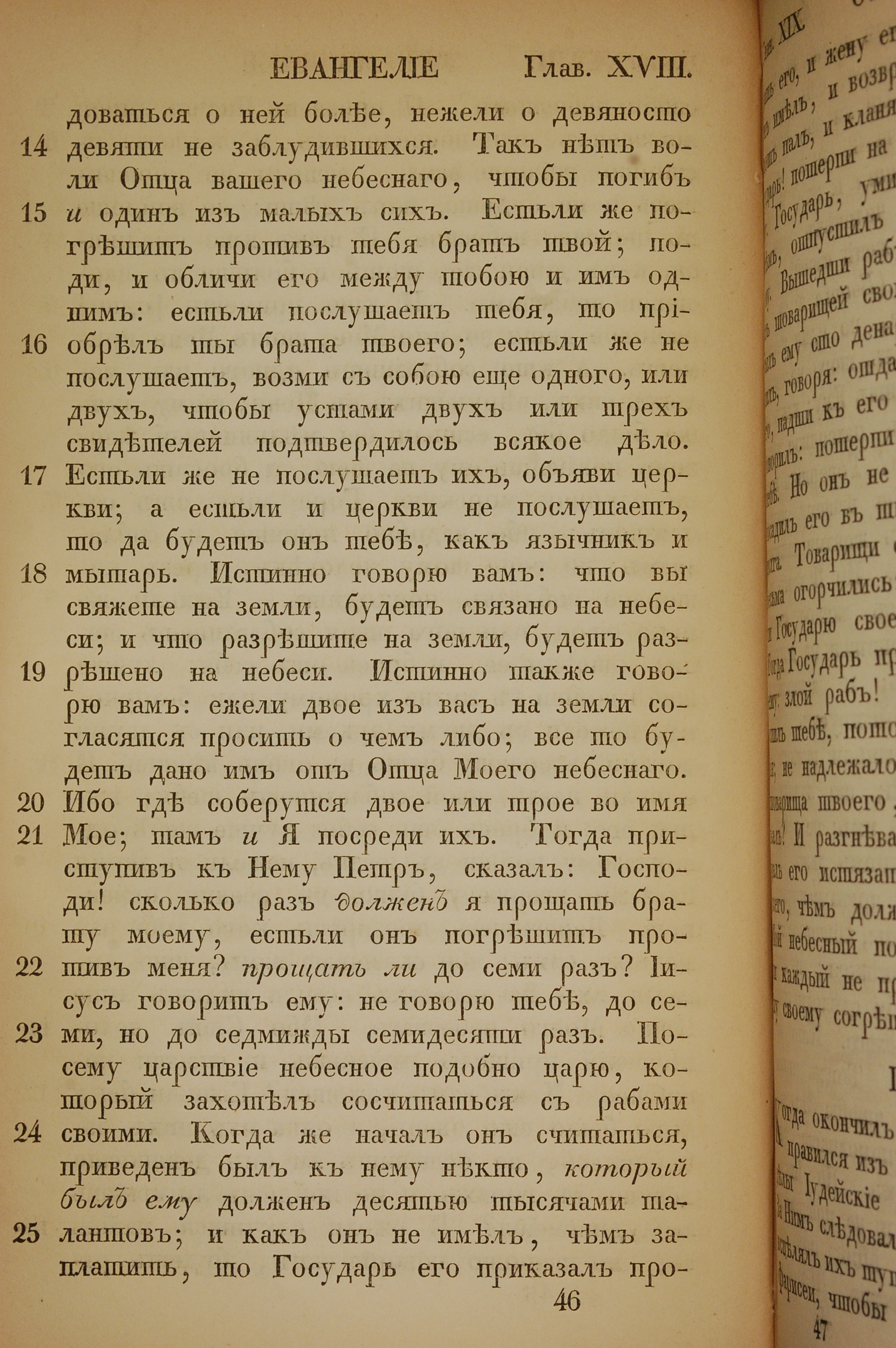 1855年俄文新約全書 馬太福音 18 章 14 節到 18 章 25 節