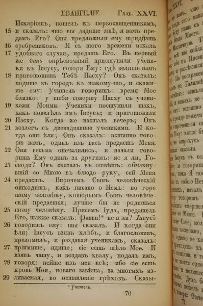 1855年俄文新約全書 馬太福音 26 章 15 節到 26 章 29 節