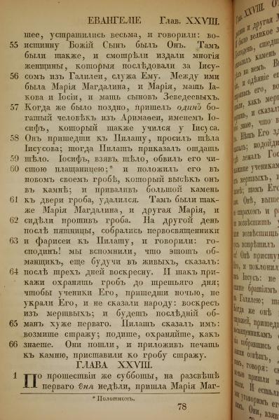 1855年俄文新約全書 馬太福音 27 章 55 節到 28 章 1 節