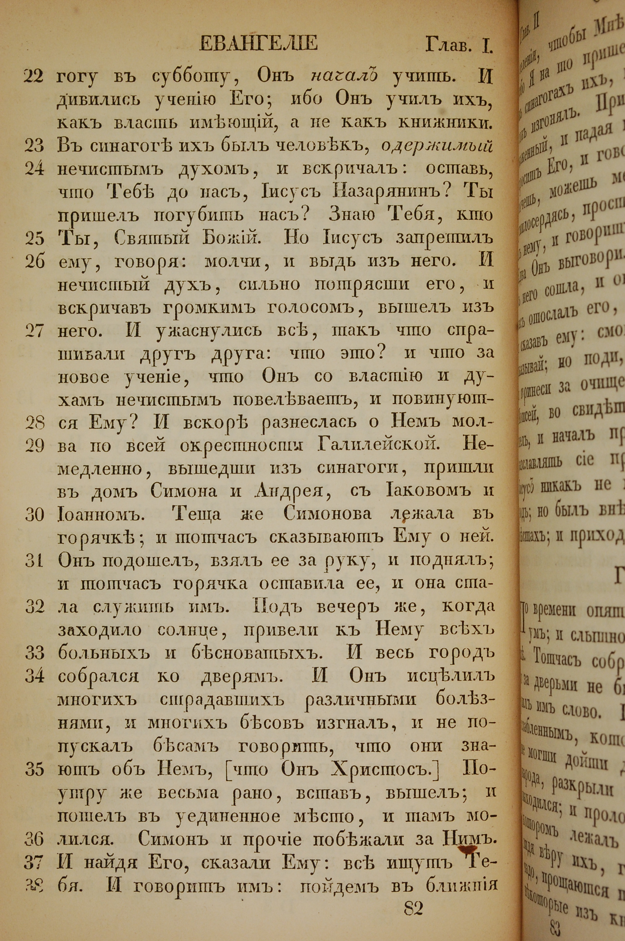 1855年俄文新約全書 馬可福音 1 章 22 節到 1 章 38 節