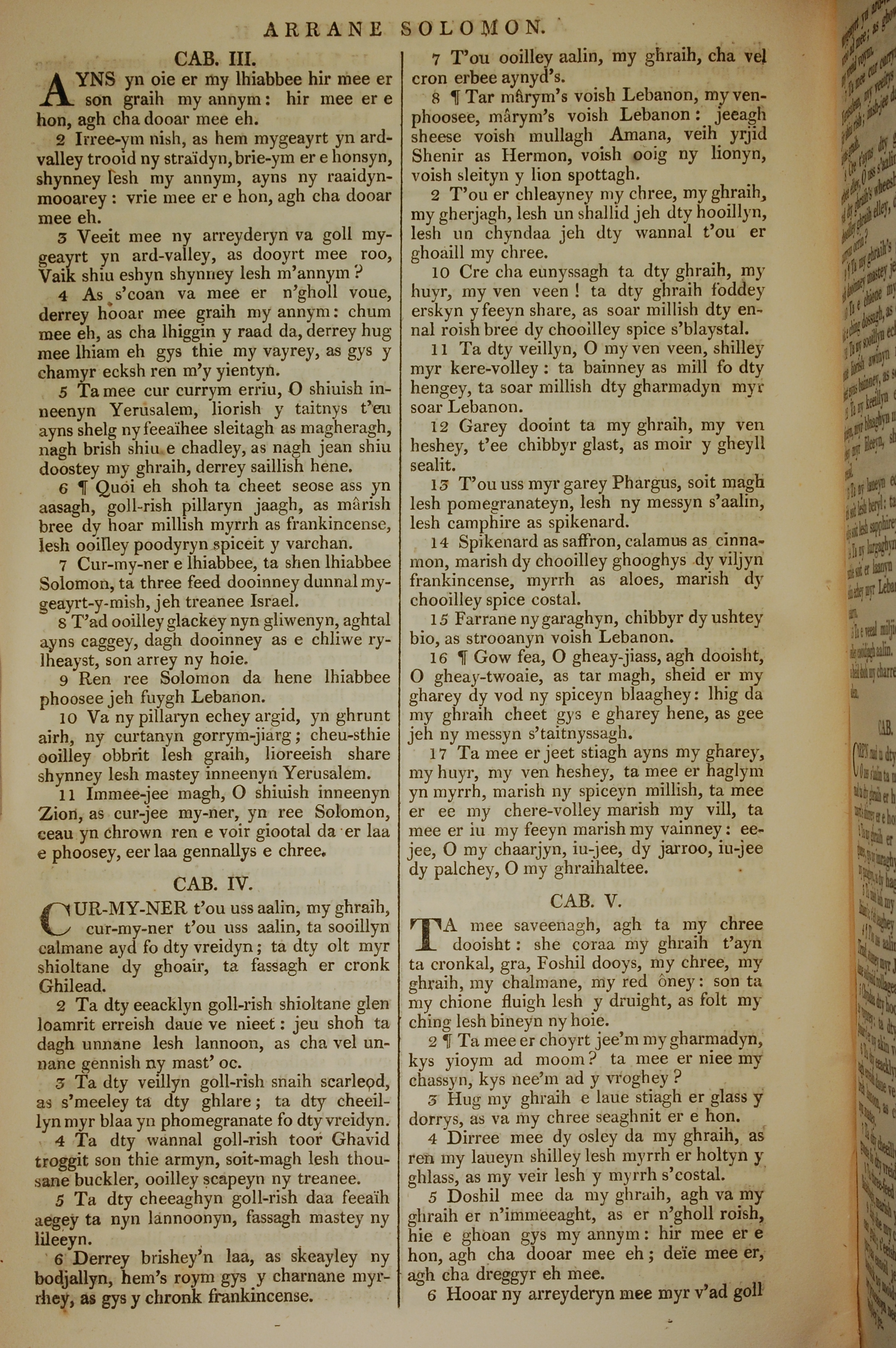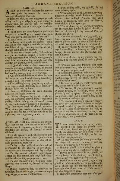 1819年曼島語聖經 雅歌 3 章 1 節到 5 章 6 節